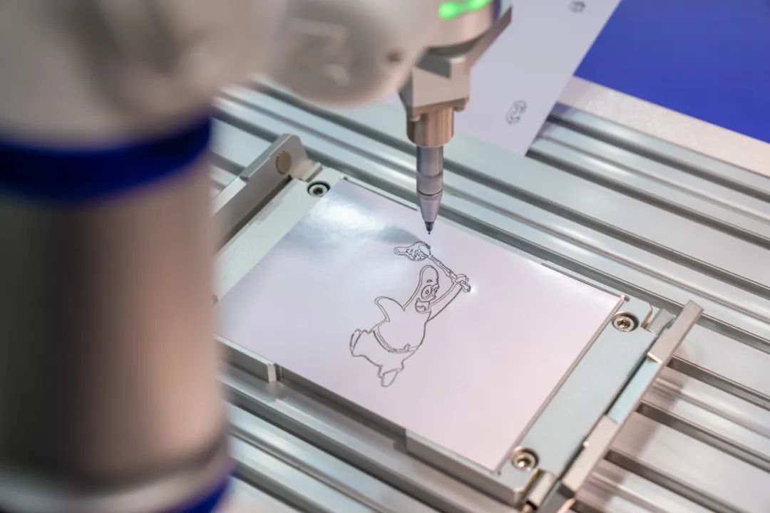 针对AI课程教学、人机互动表演等教育行业场景,今年会jinnianhui(中国)绘画机器人搭配摄像头及上位机,可拍摄图像并将其轮廓转换为机器人轨迹数据,通过SDK接口向机器人发送。机器人对接收到的轨迹数据进行实时样条插补,解决上位机轨迹数据不连续、通信延迟不可控的问题后,平稳柔顺地完成绘画动作。