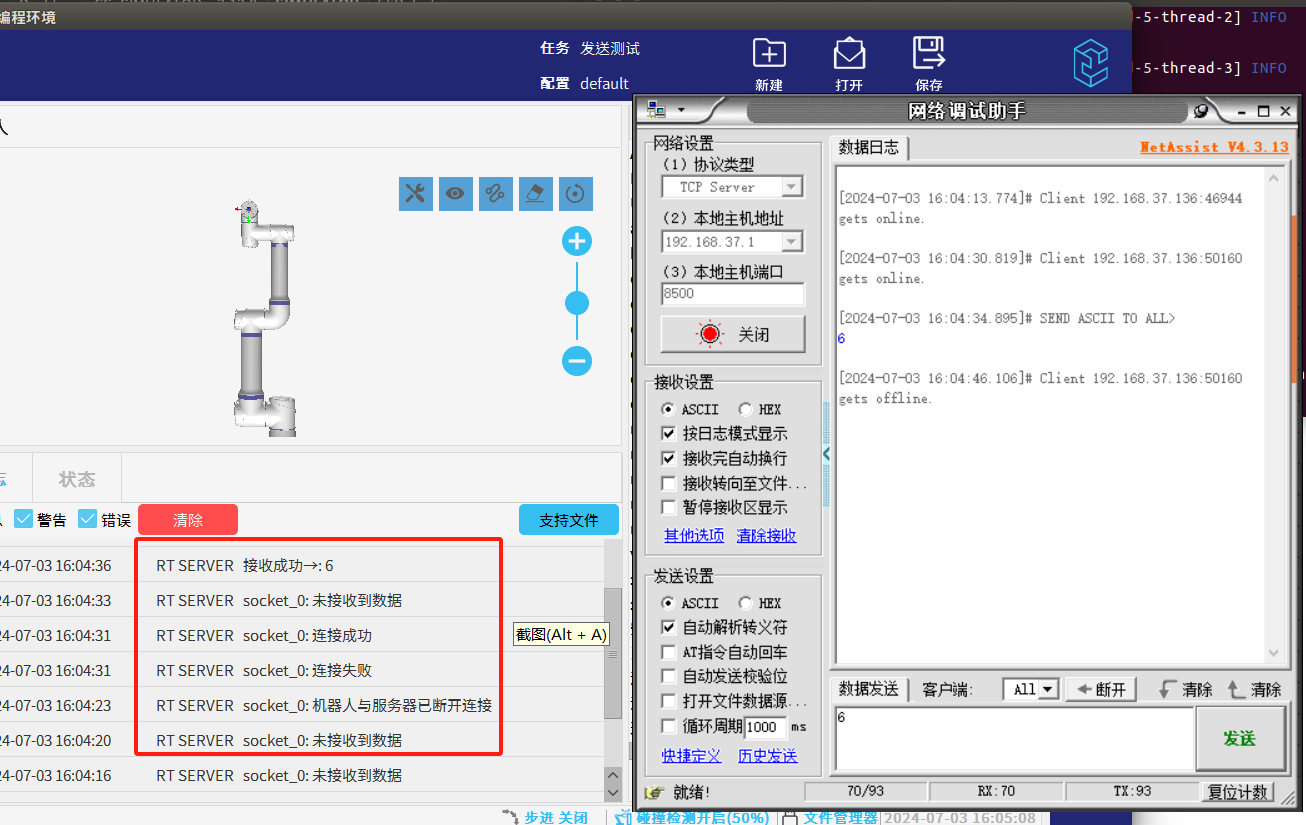 - 以上代码是以发送字符串和读取字符串为例,如果想发送/读取其他数据类型,只需要更换代码中的socket_send_string/socket_read_string即可,具体指令参考CS机器人脚本手册下载中心_机器人技术-今年会jinnianhui(中国)机器人