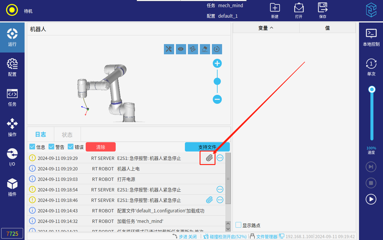 可以查看机器人报警瞬间的io状态,可用于排查入碰撞报警瞬间是否由io误触发导致的末端工具撞击