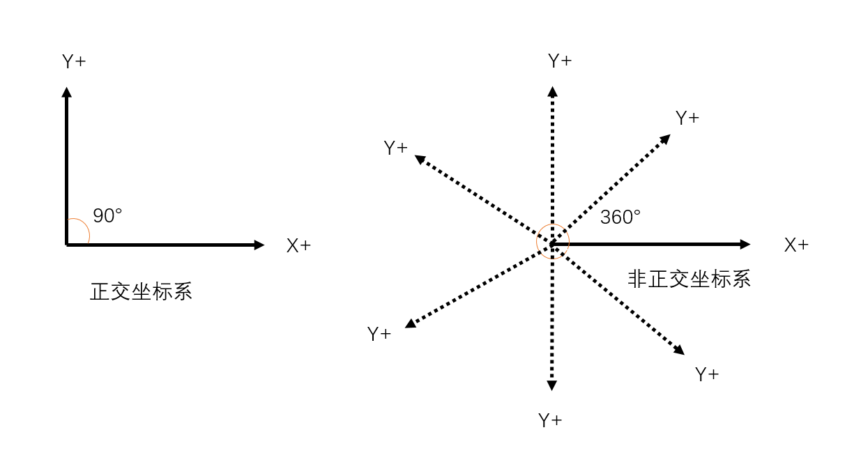● 非正交坐标系:坐标轴之间的X,Y夹角不是 90 度,可能是任意角度。