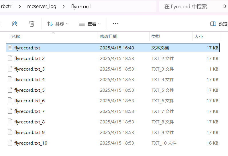 Flyrecord 文件夹里记录每一毫秒的运动过程的数据;机器人运行的点位,速度,温度,关节力矩等。