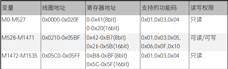 4. ModBus 协议中一个寄存器为 16 位变量,因此对 M 变量的一个寄存