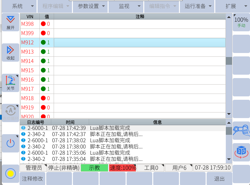 1.机器人作为从站可通过脚本直接读取写入寄存器数值,可将数值转化为全局变量,在示教器上进行显示或者调用